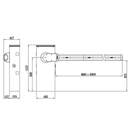 Tělo závory Bionik 8 s řídící jednotkou bez pružiny a ramene.