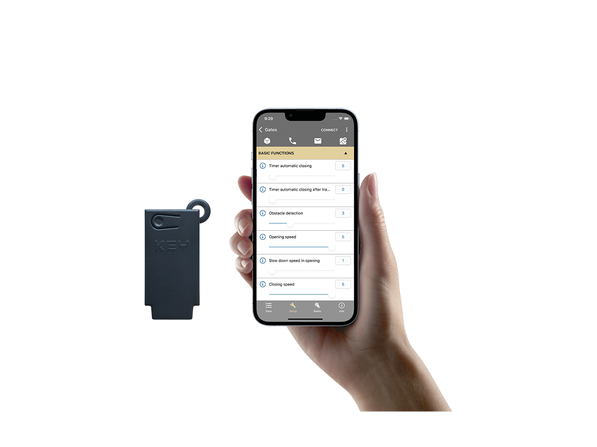Aplikace speciálně navržená pro profesionální instalátory, pro konfiguraci dveří a bran.