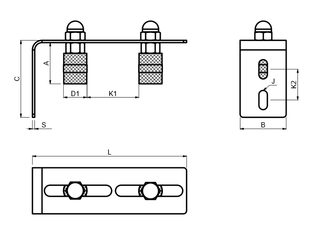 FRM - Horní vedení posuvné brány se dvěma regulovatelnými válci. Použití pokud výplň brány nepřesahuje rám.