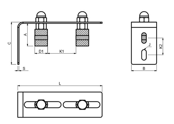 Horní vedení posuvné brány se dvěma regulovatelnými válci. Použití pokud výplň brány nepřesahuje rám.