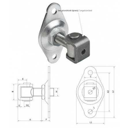 Pant pro křídlové brány, regulovatelný s plotnout pro zděné a kovové sloupky.