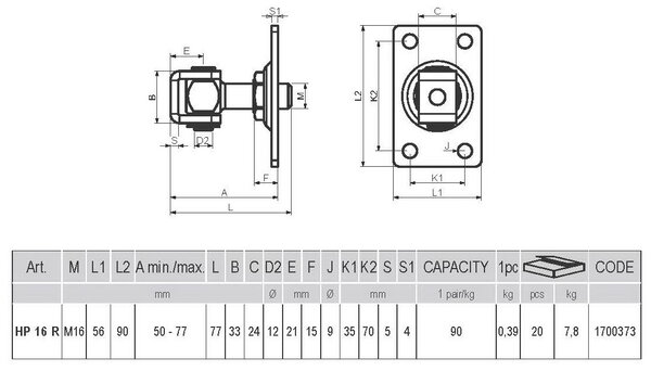 HP 16 R - pant regulovatelný s plotnou pro zděné a kovové sloupky