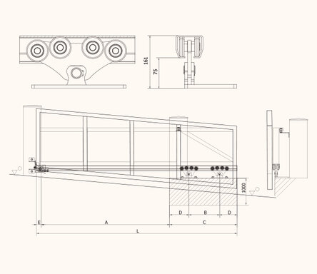 Šína - C profil zinkovaný s výnosem do maximální délky průjezdu 8m a hmotnosti 700kg.