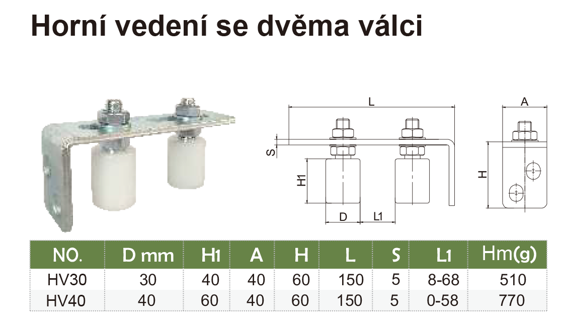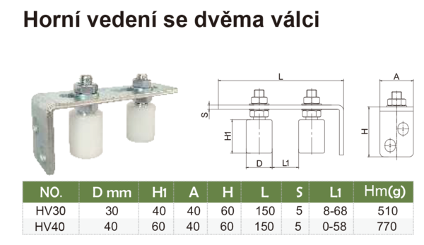 Horní vedení brány, nastavitelné s válci 30mm v průměru.