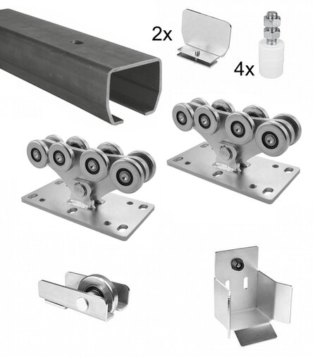 Sestava pro posuvné brány do 600kg a 6,5m průjezdu. Vše co potřebujete pro zhotovení kvalitní samonosné posuvné brány bez pohonu.
