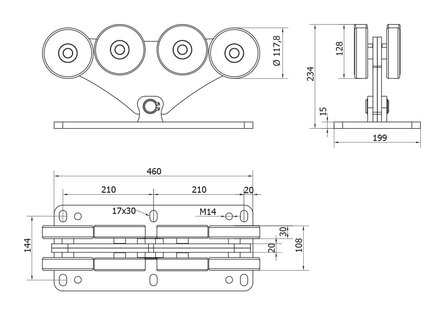Nosný vozík pro samonosnou posuvnou bránu do hmotnosti 1200kg a maximální světlosti průjezdu 13,5m.Vozík je určen pro pužití se šínou (c profilem) typu STAGE LB, STAGE LZ.