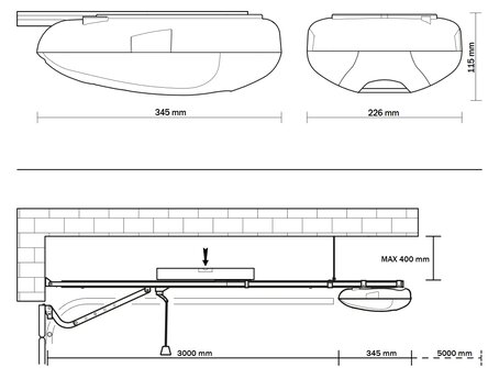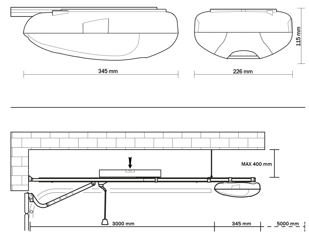 Sada pohonu pro garážová sekční a výklopná vrata 1000N.