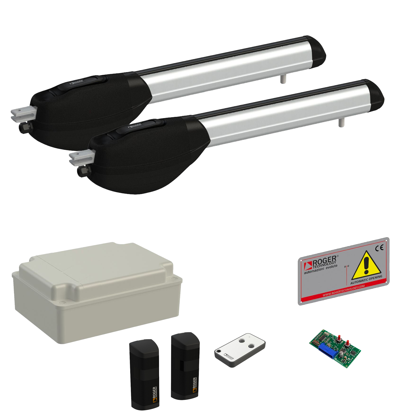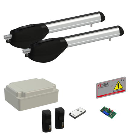 Originál sada pohonu a příslušenství od ROGER Technology pro křídlovou bránu!! Pohony brány lze použít jak pro otevírání dovnitř, tak pro otevírání směrem ven.