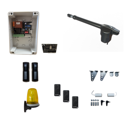 Kompletní sada pohonu jednokřídlových bran. Pohon lze použít jak pro otevírání dovnitř, tak pro otevírání směrem ven.