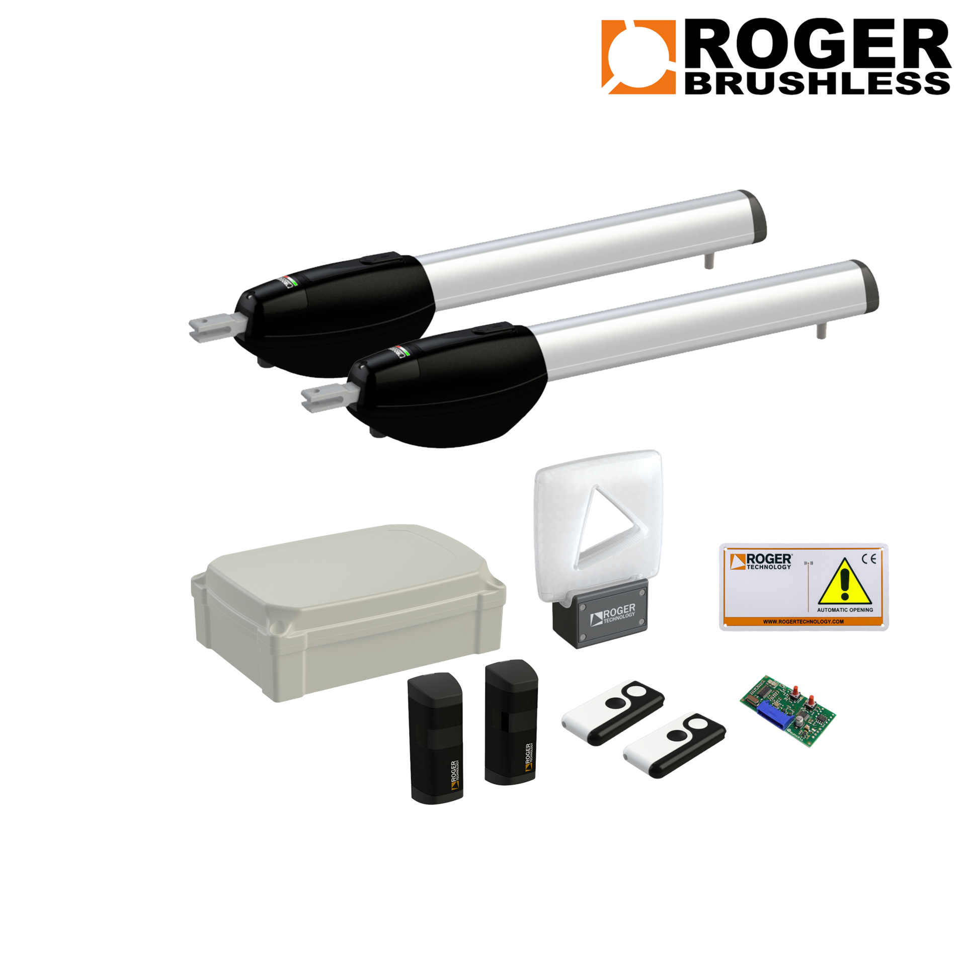 Originál sada pohonu s příslušenstvím od ROGER TECHNOLOGY!! Sada pohonu pro super intenzivní provoz. Kompletní sada pohonu pro křídlovou bránu. Určeno až pro velmi intenzivní provoz. Pohony brány lze použít jak pro otevírání dovnitř, tak pro otevírání směrem ven.