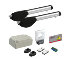 Kompletní sada pohonu pro křídlovou bránu max. šířka křídla 2,5m do hmotnosti jednoho křídla 250kg, napájení 230V. Velmi kvalitní pohony křídlových brana a vrat, jejichž tělo je vyrobeno ze slitiny hliníku.