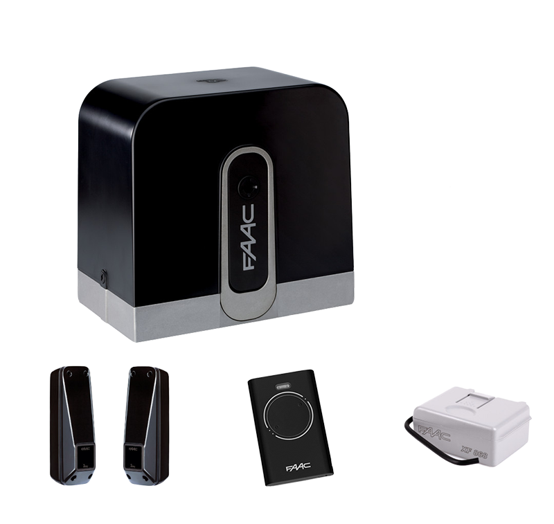 Elektromechanický pohon FAAC C720 s rychlostí posunu 18 m / min. pro posuvné brány s maximální hmotností do 400 kg určený pro privátní použití s novou redukcí (patent FAAC), vysokou mechanickou účinností (větší než 80 %), elektronickou řídící jednotkou s enkodérem a reversem při detekci překážky a magnetickým koncovým spínačem.